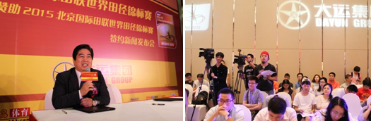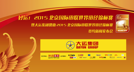 8月18日,“好運!2015北京國際田聯(lián)世界田徑錦標(biāo)賽暨大運集團贊助2015北京國際田聯(lián)世界田徑錦標(biāo)賽”簽約新聞發(fā)布會在昆侖飯店舉行。在發(fā)布會上,大運集團簽約成為“2015北京國際田聯(lián)世界田徑錦標(biāo)賽”國內(nèi)金牌贊助商。