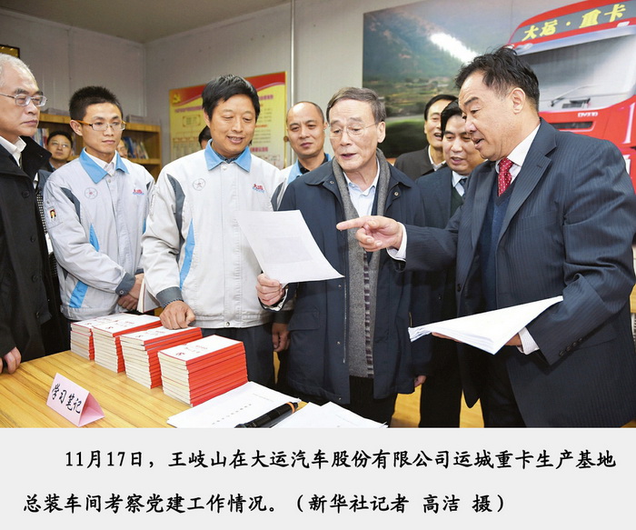 2016年11月17日下午,中共中央政治局常委、中央紀(jì)委書記王岐山一行蒞臨大運汽車股份有限公司運城重卡生產(chǎn)基地視察,深入了解大運公司生產(chǎn)經(jīng)營及黨建情況。