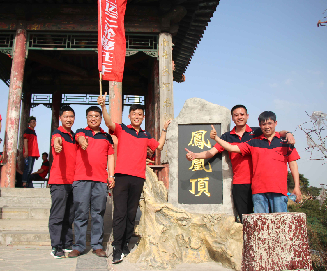 經(jīng)過4公里公路徒步前行,各個小組陸續(xù)到達(dá)鳳凰山下,對高大雄偉的山峰展開了全面攻勢。每個小組不離不棄,勇攀高峰,汗水濕透了衣襟,一步一個腳印,一步一個臺階,最終銷售二區(qū)第一個成功登頂,其余團(tuán)隊也不甘示弱陸續(xù)到達(dá)山巔。在全體成員的共同努力下,十一面大運(yùn)三輪的旗幟飄揚(yáng)在鳳凰金鼎之上。