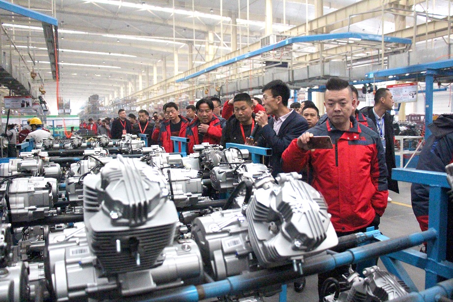 圖:經(jīng)銷(xiāo)商及供應(yīng)商參觀會(huì)議樣車(chē)及大運(yùn)三輪制造工廠