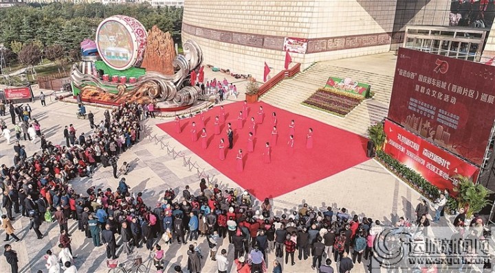 10月31日至11月2日,運城博物館南廣場上彩旗飄飄,鼓樂陣陣。在“奮進山西”國慶彩車巡展現(xiàn)場,群眾文藝表演熱火朝天。從耄耋老人到學步幼童,從機關(guān)干部到企業(yè)工人,我市社會各界爭相一睹彩車風采,上萬名群眾共同見證了這振奮人心的難忘時刻。