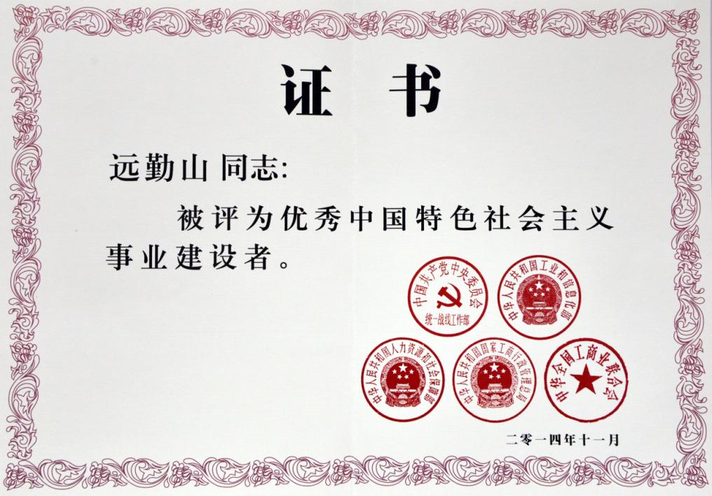 2014年大運集團董事長遠(yuǎn)勤山榮獲“優(yōu)秀中國特色社會主義建設(shè)者”稱號