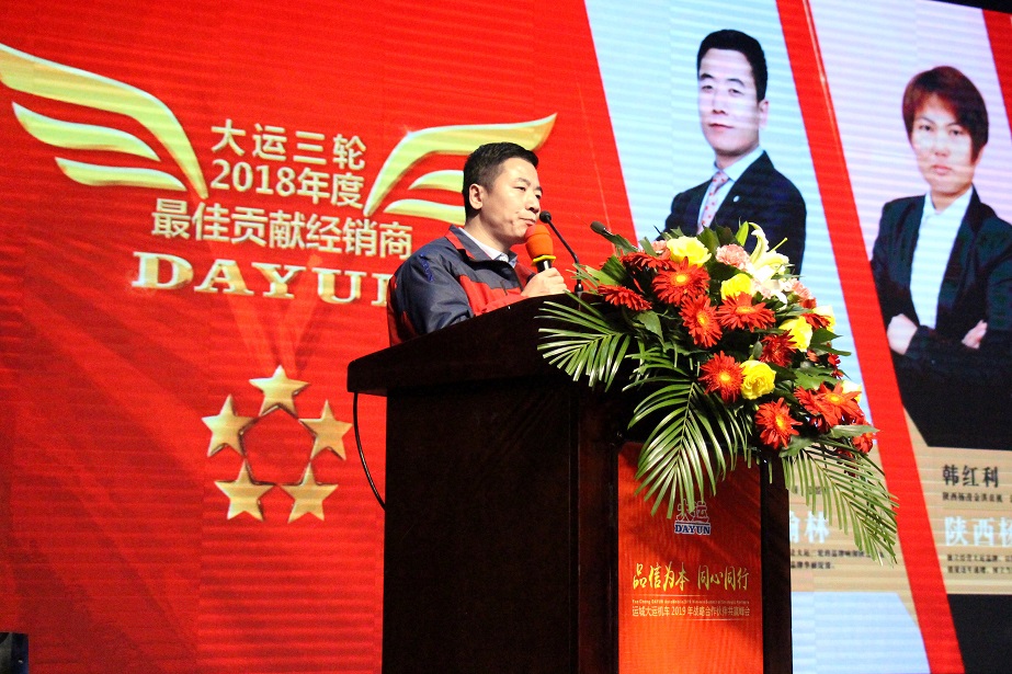獲獎(jiǎng)經(jīng)銷(xiāo)商代表,陜西創(chuàng)天商貿(mào)有限公司李彥宏先生,在經(jīng)銷(xiāo)商發(fā)言環(huán)節(jié)中提到,2018年成績(jī)斐然,相比2017年銷(xiāo)量提升53%。2019年,在市場(chǎng)疲軟的情況下,會(huì)盡******的努力爭(zhēng)奪市場(chǎng)份額,因?yàn)榇筮\(yùn)品牌馳名中外;因?yàn)榇筮\(yùn)有自主發(fā)動(dòng)機(jī)、全資獨(dú)立工廠;更因大運(yùn)有能量,團(tuán)隊(duì)有信心。